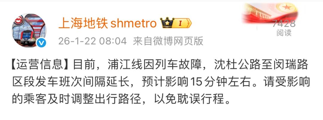 8时04分,上海地铁官方微博发布运营信息: